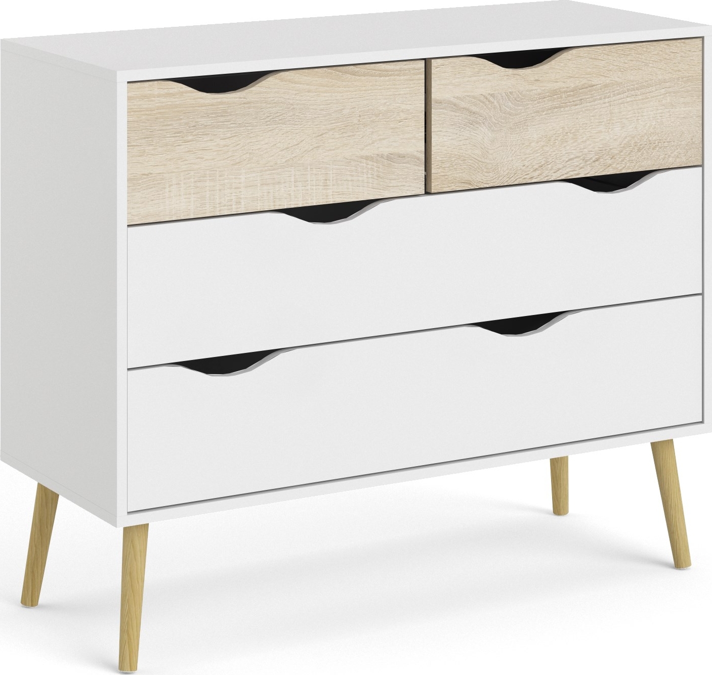Oslon lipasto 4 laatikolla - Valkoinen/tammi