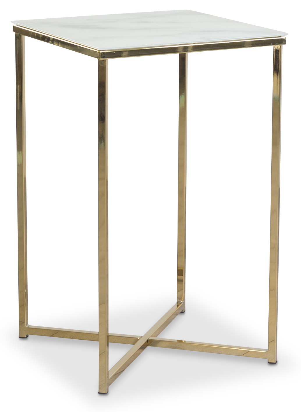 Helposti sijoitettava lamppupöytä, joka on saanut inspiraationsa Art deco -tyylistä. Himmeä lasilevy vaalealla marmoroinnilla ja runko on kiiltävää messinkiä.