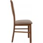 Puinen ruokapöydän tuoli kangasverhoilulla.