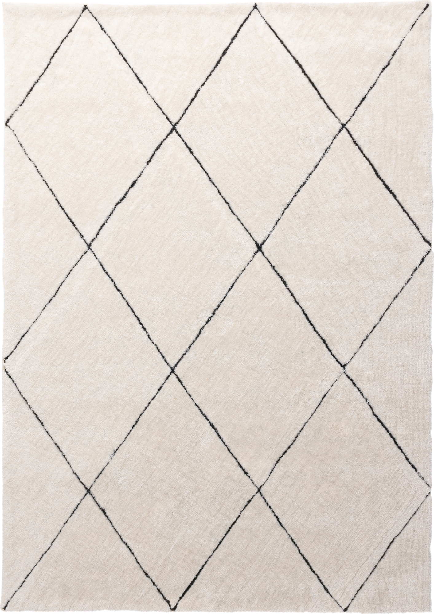 Matto, joka tarjoaa täydelliset puitteet huoneeseesi ja luo tyylikkään ja kutsuvan ilmapiirin. Valkoisella pohjavärillään tämä matto antaa rauhallisuuden ja puhtauden tunteen. Valkoinen väri toimii neutraalina pohjana, joka sulautuu erilaisiin sisustustyyleihin ja luo huoneeseen avaruuden ja valon tunteen, kun taas herkulliset tekstuurin yksityiskohdat luovat ulottuvuutta ja mielenkiintoa. Musta koristeellinen ruudukkokuvio antaa matolle eloa ja liikettä sekä luo visuaalista kontrastia muotoiluun. Jos haluat luoda modernia ja minimalistista tunnelmaa tai antaa ripauksen eleganssia ja tyyliä kotiisi, tämä matto on täydellinen sisustus!