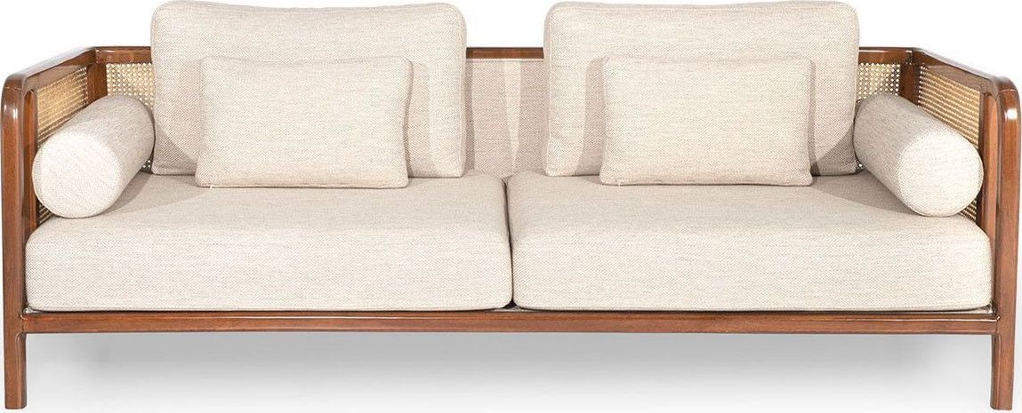 Sohva on valmistettu puusta, päällystetty pellavakankaalla.