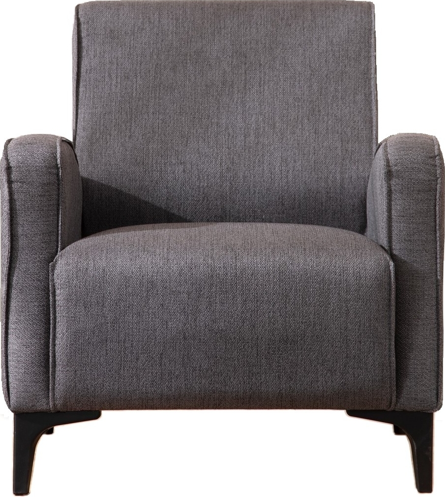 Pyökkipuinen nojatuoli muovijalat ja polyesteriverhoilu. Kiinteät istuin- ja selkätyynyt sekä kemiallisesti puhdistettava kangas.