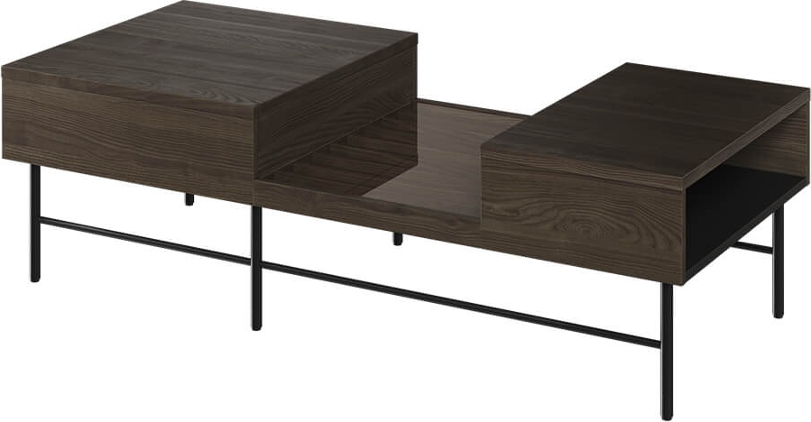 Laminaattista lastulevystä valmistettu sohvapöytä metallijaloilla. Toimitetaan kokoamattomana.