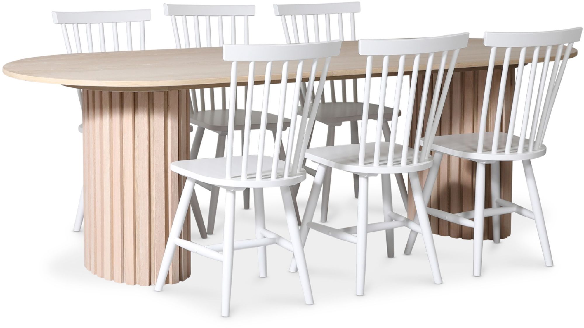 PiPi ruokailuryhmä 240 cm sis. 6 valkoista Karl-tuolia - Whitewash