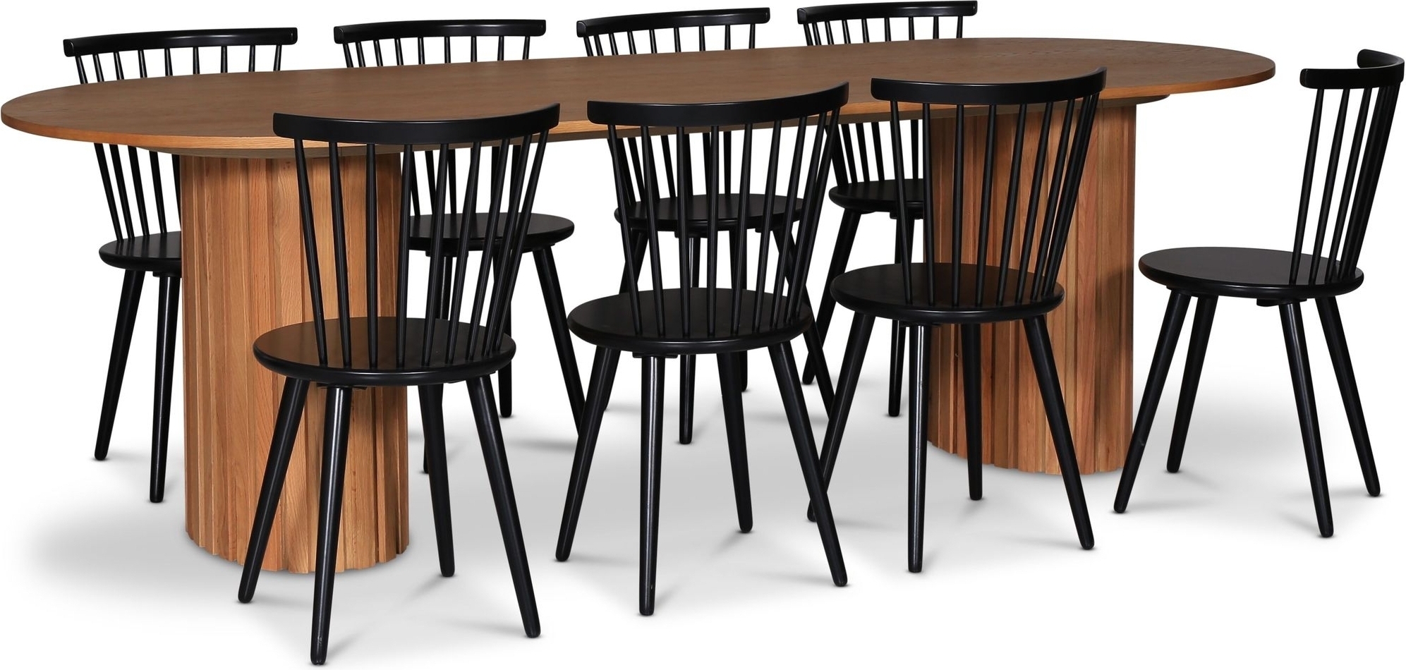 - PiPi soikea ruokailuryhmä 240 cm sis. 8 mustaa uloketuolia Castor - Öljytty tammiviilu