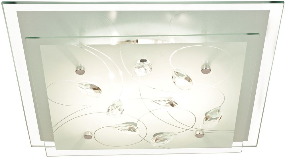 Kattovalaisin kromattua metallia ja kirkasta lasia. Helppo asennus kattoon.