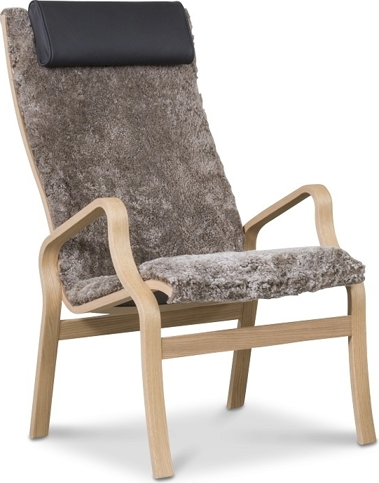 Svea-nojatuoli on suunniteltu Tanskassa skandinaaviseen kotiin. Huonekalut on päällystetty vaaleanruskealla aidolla lampaannahalla, ja käsinojat on valmistettu öljytyllä tammiviilulla. Suunnitteluklassikko, joka kestää tulevaisuutta! Mukana musta nahkainen niskatyyny, jota voidaan käyttää valinnaisesti nojatuolin kanssa!