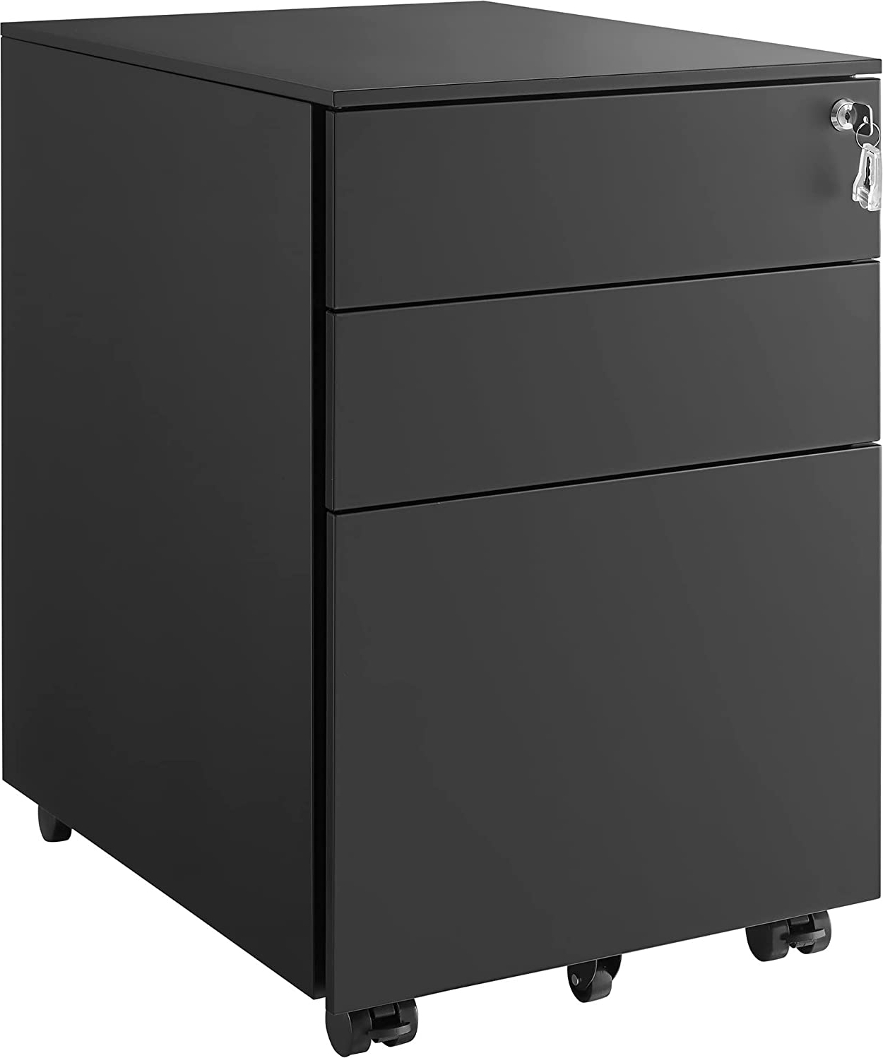 Arkistokaappi terästä. Lukittava kaappi pyörillä. Kahdessa pyörässä on jarrut ja alalaatikossa oma pyörä vakauden takaamiseksi.