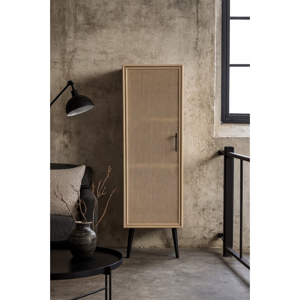 React on sarja säilytystilaa, joka on rakennettu käsin päästämään mahdollisimman lähelle luontoa. Jokainen huonekalu on ainutlaatuinen ja valmistettu perinteisen puusepäntyön mukaan. Runko käsiteltyä puuta ja luonnonrottinkia. Ovessa on tyylikkäät mustat metallikahvat.