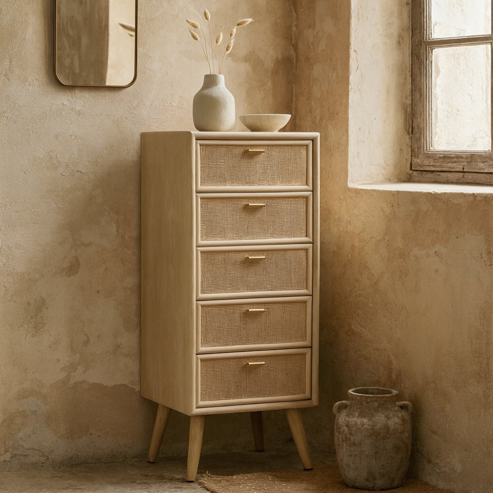 Tämä tuote on käsintehty ja siksi on luonnollista, että puussa/rottinkissa on hieman raakoja yksityiskohtia, pinnat eivät ole täysin sileitä ja värimuutoksia saattaa esiintyä. Tämä on osa tuotteen viehätysvoimaa.