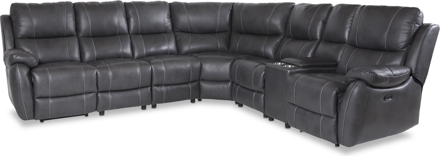 Recliner-kulmasohva Enjoy - Kuuden istuttava (sähköinen) harmaalla keinonahkalla (malli V)