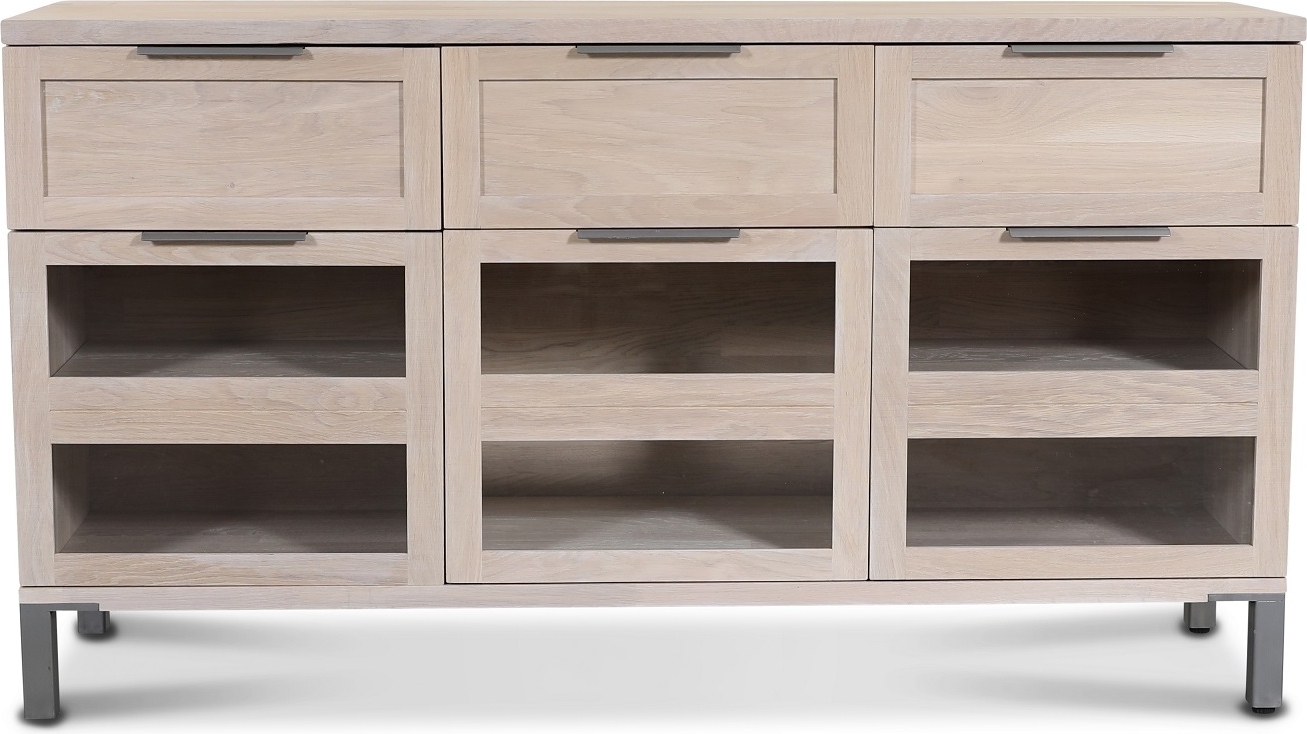 Whitewash-värinen Rexton-sivupöytä jauhelakatuilla teräsjaloilla. Soft-close -toiminto laatikoissa ja ovissa. Toimitetaan koottuna. Rexton on korkealaatuinen designsarja ja koskee sekä muotoilua että materiaaleja.