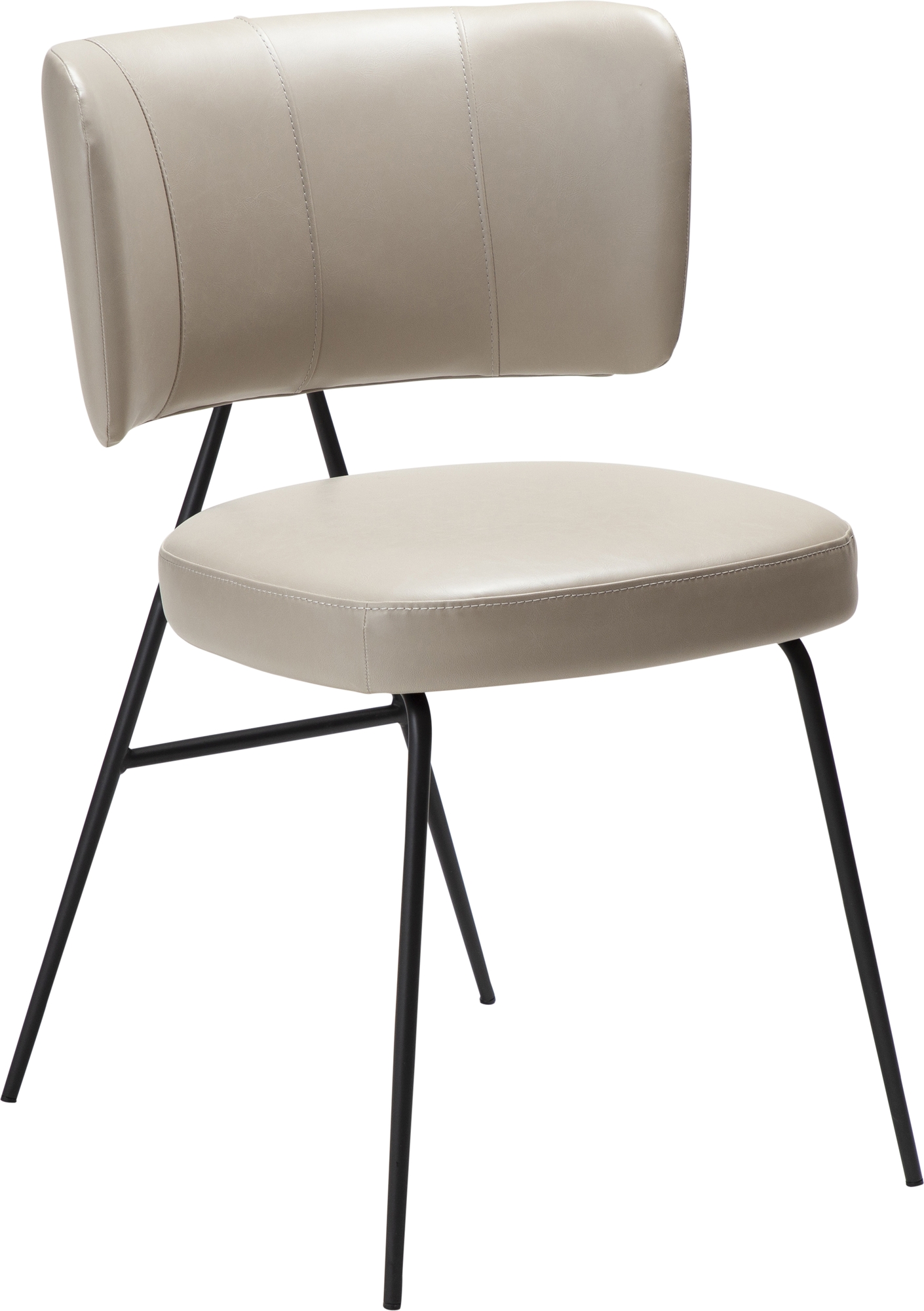 By Georgsenin suunnittelema ruokatuoli tanskalaiselle Dan-Form-brändille. Tuolissa on koristeelliset saumat ja kapeat metallijalat, jotka muodostavat A:n selkänojaa pitkin.