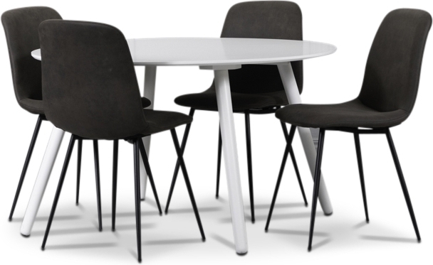 Rosvik ruokailuryhmä, pyöreä ruokapöytä + 4kpl Smokey-ruokatuolia - Valkoinen / vintage