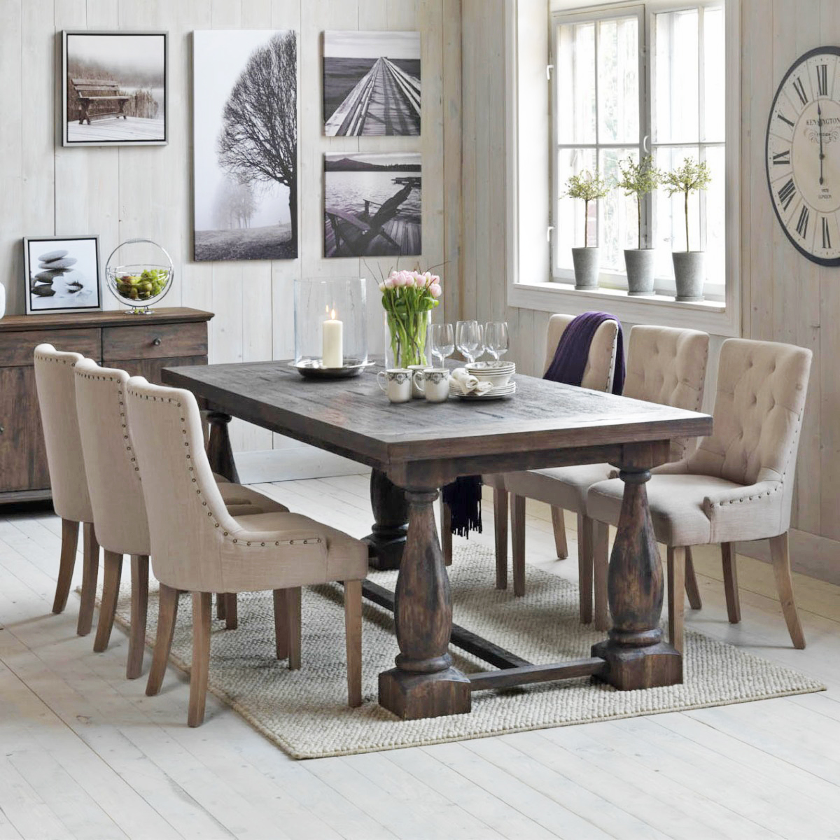 - Ruokailuryhmä: Lamier-ruokapöytä + 6 Tuva-tuolia, beige - Ruskeat jalat