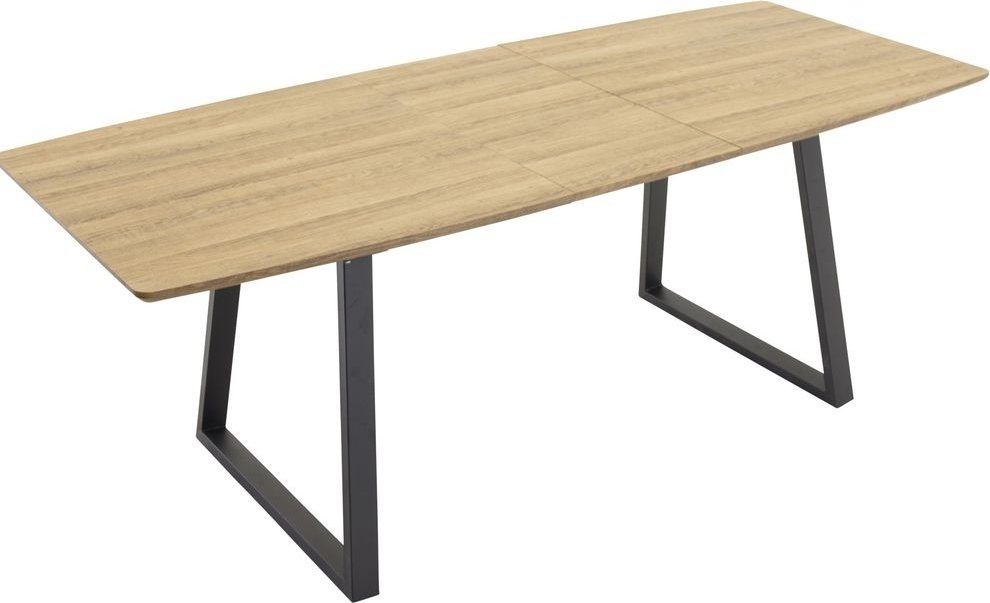 Hallsberg on ruokapöytä vankalla pohjalla ja pöytälevy on öljytyllä tammikuviolla varustettua MDF:ää. Runko on valmistettu mustasta metallista. Lisälevyn avulla voidaan pöytää pidentää 200 senttimetriin.