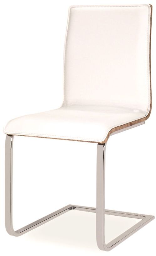 Hieno ruokatuoli modernilla designilla. Runko on valmistettu kromatusta metallista ja takapuoli on vaneria upealla tammitoteutuksella. Istuin on verhoiltu todella miellyttävällä keinonahkalla lopullisen mukavuuden takaamiseksi.