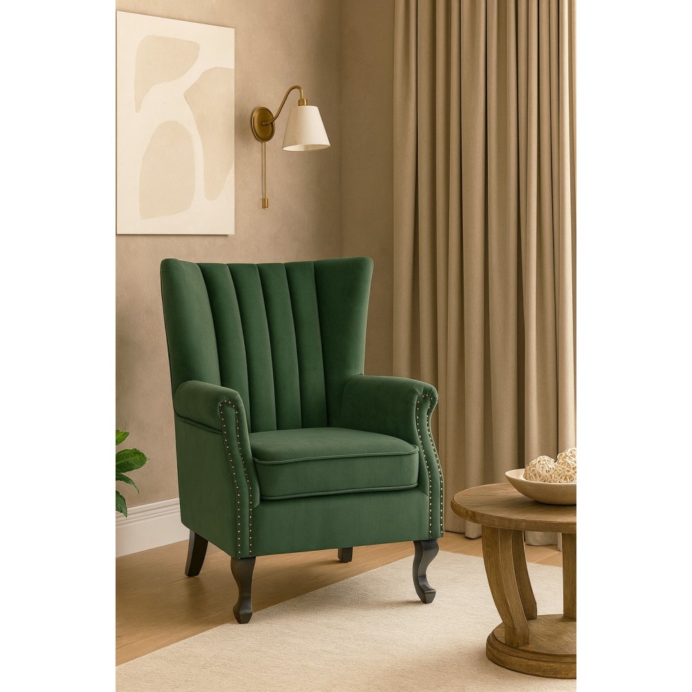 Anna kotiisi ripaus eleganssia ja mukavuutta Rutil vihreällä korvaläppätuolillamme. Tämä upea nojatuoli on suunniteltu tarjoamaan sekä tyyliä että rentoutumista, joten se on loistava valinta kaikkiin talon huoneisiin. Syvänvihreä samettikangas antaa nojatuolille ylellisen tuntuman ja täyteläisen värin, joka piristää tilaasi. Korvaläpät eivät vain lisää klassista viehätysvoimaa, vaan tarjoavat myös lisätukea ja yksityisyyttä, joten ne ovat ihanteellisia rentoutumiseen kirjan parissa tai suosikkiesityksestäsi nauttimiseen.
