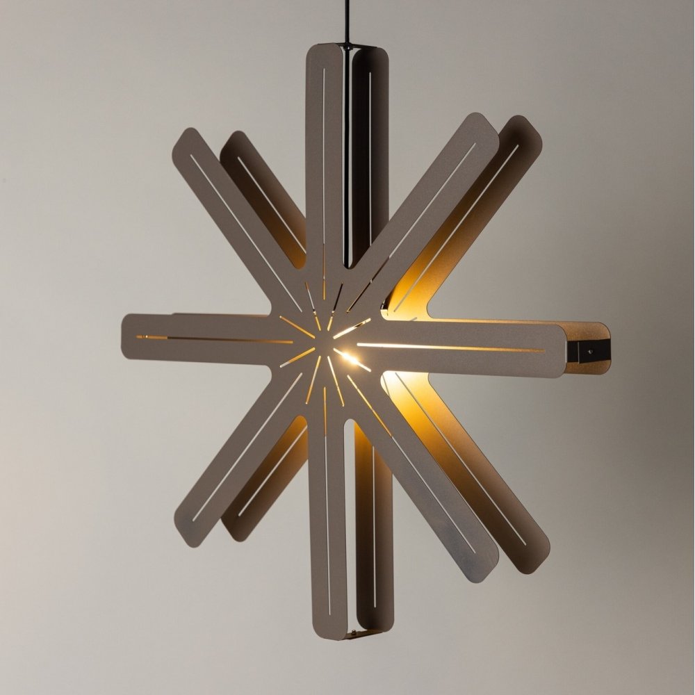 Tämä Säfsen-sarjan ruskeasta teräksestä valmistettu tähdenmuotoinen kattovalaisin ei ole tavallinen valaisin, se on kodin uusi tähti, joka muuttaa kotisi paikaksi, joka on täynnä lämpöä ja modernia. Tyylikkään ruskean teräksen muotoilunsa ansiosta se sulautuu saumattomasti useimpiin sisustustyyleihin ja on kaunis katseenvangitsija trendikkäässä kodissa. Valaisin roikkuu mustalla johdolla, joka voidaan helposti piilottaa verhon taakse tai tummaa seinää vasten. Lampunvarjostin muistuttaa tähteä ja piilottaa polttimon samalla, kun se levittää runsaasti ja miellyttävää valoa huoneeseen. Säfsenillä voit luoda rennon ja kodikkaan tunnelman, ripustatko sen keittiön tai makuuhuoneen ikkunaan. Yksi Säfsenin parhaista ominaisuuksista on sen monipuolisuus. Se sopii täydellisesti syksyn pimeisiin päiviin, kun haluat luoda lämpimän ja kutsuvan tunnelman. Mutta se on myös tunnelmallinen yksityiskohta joulujuhlissa, jossa se levittää viehättävää valoa ja siitä tulee täydellinen koriste-yksityiskohta. Se on yksinkertaisesti monella tapaa ihana ja sitä on saatavilla useissa eri koossa ja tulee myös pöytävalaisimena ja lattiavalaisimena jos se sopii kotiisi paremmin!