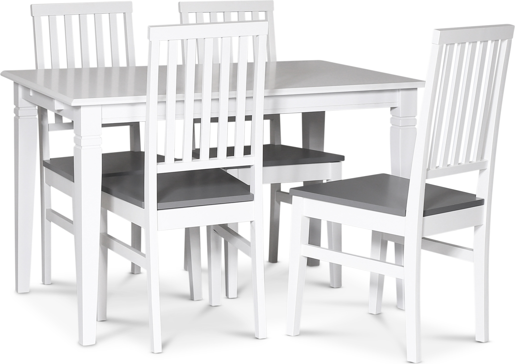 Sandhamn ruokailuryhmä Klassinen muotoilu. Tyylikäs ruokapöytä 120x80 cm, valkoiseksi lakatut jalat ja pöytälevy.