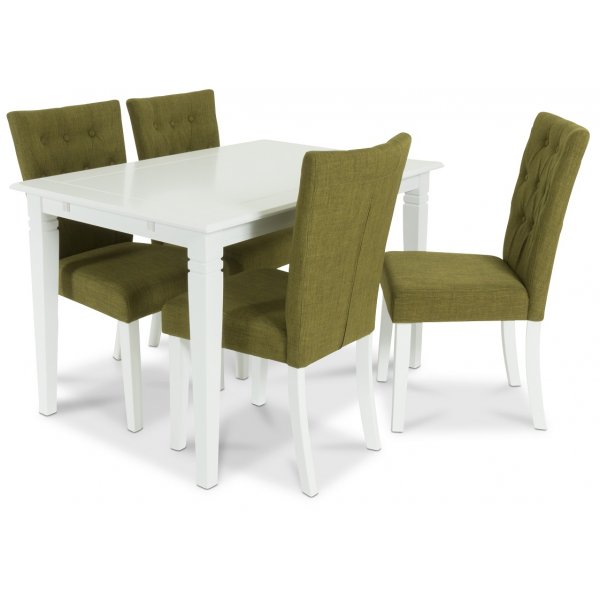 Sandhamn ruokailuryhmä 120 cm pöytä ja 4 Crocket-tuolia vihreää kangasta