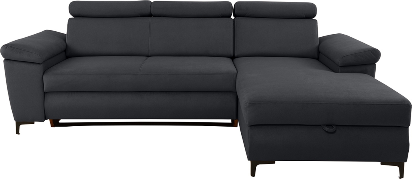 Divaani sohva sänkytoiminnolla, säilytystilalla ja säädettävällä niskatuella. Yhdessä käsinojassa on piilotettu säilytystila.