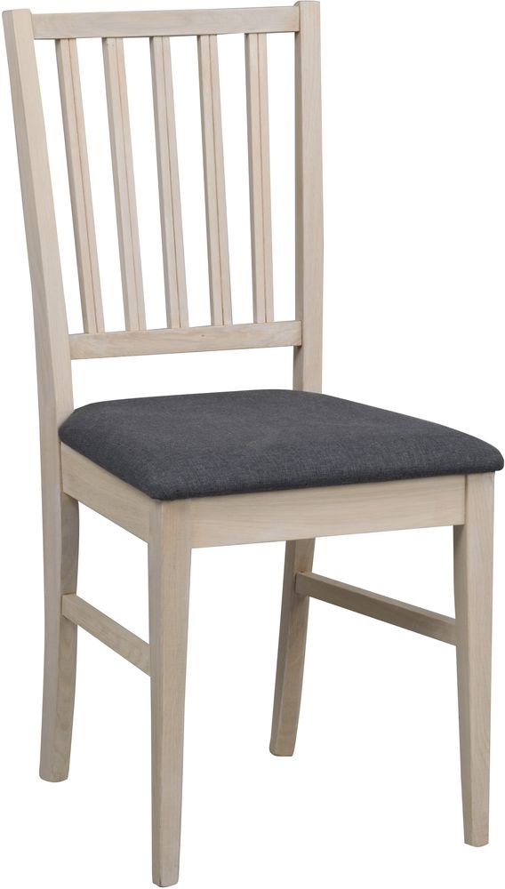 Scarlett-tuoli, runko whitewash-tammea ja istuin on verhoiltu harmaalla kankaalla.