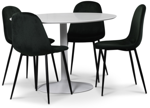 Seat ruokailuryhmä, pyöreä ruokapöytä + 4kpl Carisma-samettituolia - Valkoinen / vihreä