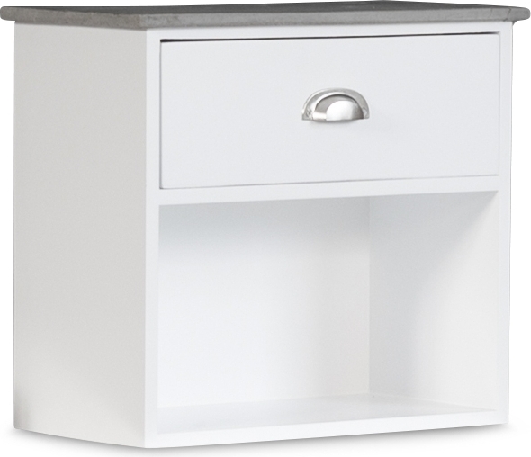 Seinään asennettava Hugo-yöpöytä yhdellä laatikolla - Valkoinen/Sementti: