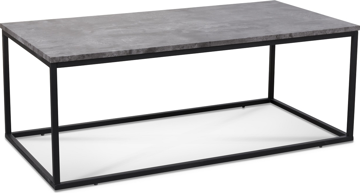 Shanghai. Sohvapöytä sementti-imitaatioisella (MDF) pöytälevyllä. Jalat ja runko mustalakattua metallia. Tyylikäs ja hintansa arvoinen sohvapöytä kestävällä pinnalla.