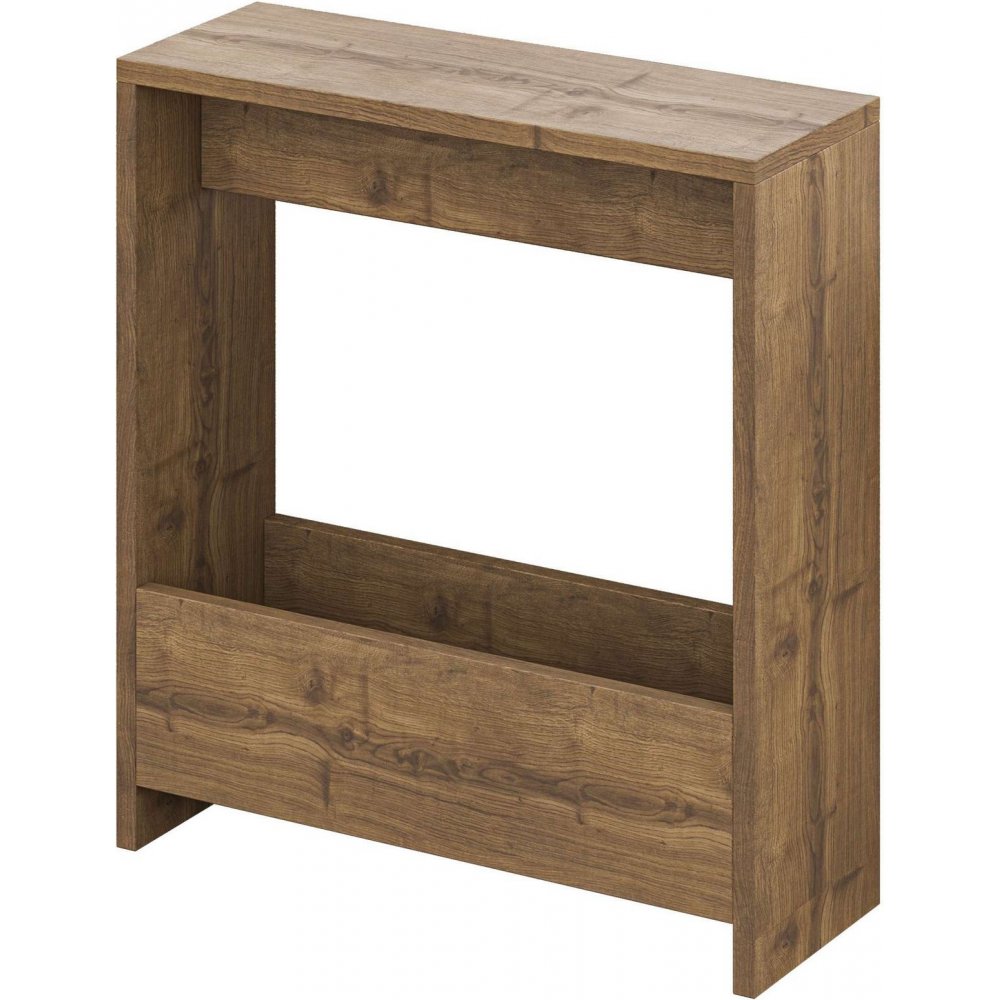 Tämän sivupöydän puhtaat linjat ja minimalistinen muotoilu tekevät siitä täydellisen valinnan niille, jotka arvostavat modernia estetiikkaa. Sen ruskea puuväri kirkastaa kaikkia huoneita ja luo raikkaan ja kutsuvan ilmapiirin, johon tulet mielelläsi kotiin.