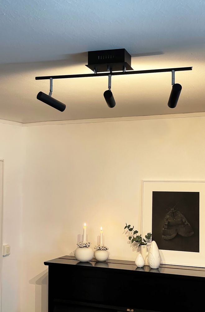 Kohdevalo mustaa ja teräksen väristä metallia. Helppo asentaa kattoon.