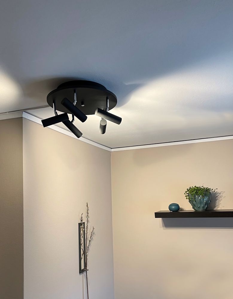 Kohdevalo mustaa ja teräksen väristä metallia. Helppo asentaa kattoon.