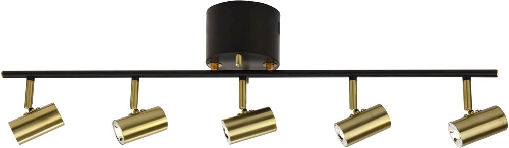 Kohdevalo mustaa ja messinginväristä metallia. Helppo asentaa kattoon.