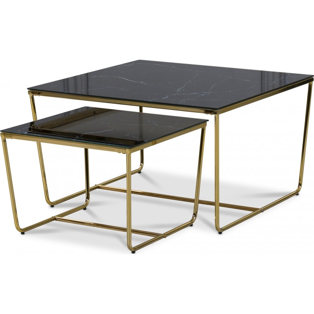 Stella Sarjapöytä - Mustaa marmoroitua lasia / Messingin värinen runko