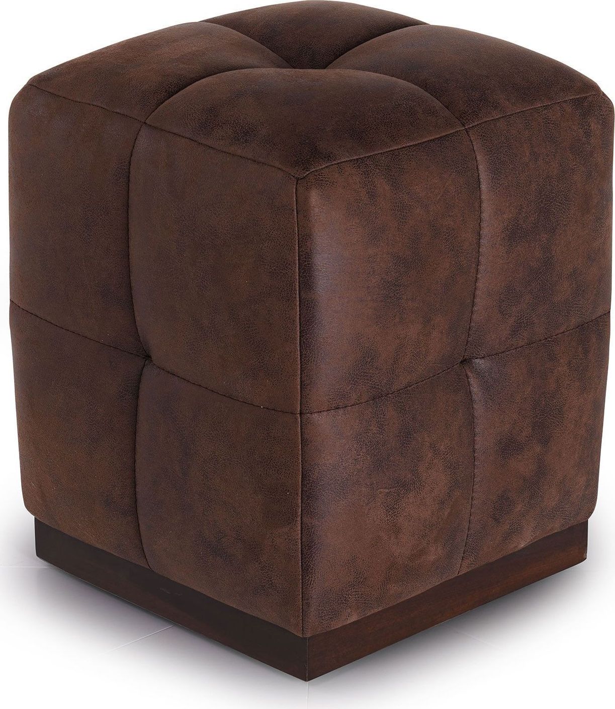 Puusta valmistettu, nubukilla päällystetty puffi.