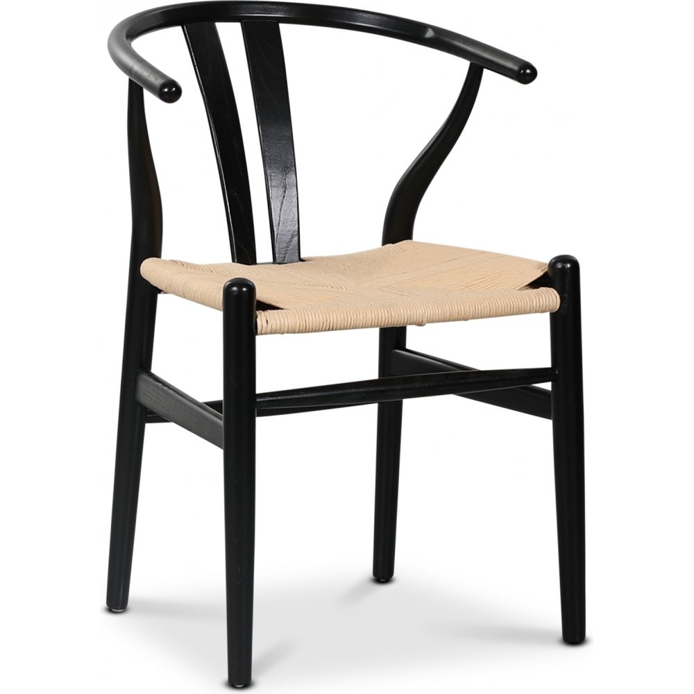 Klassinen ruokatuoli mustalakatulla, jalavasta valmistetulla rungolla. Istuin on valmistettu letitetystä paperilangasta. Toimitetaan koottuna.