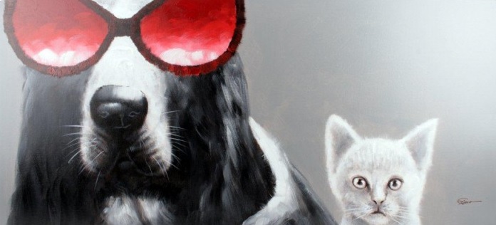 Taulu öljyvärimaalaus 150x70 cm - Koira & Kissa