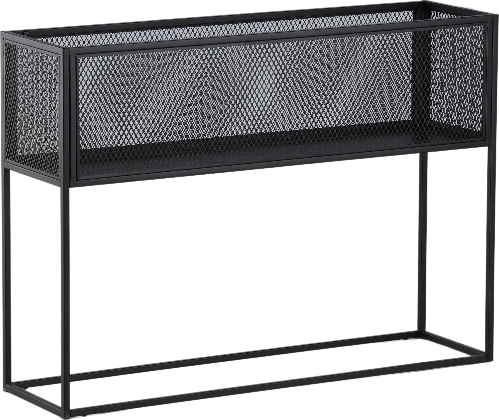 Sisusta koti modernisti ja fiksusti Teo-rehuhyllyn avulla. Tässä herkullisessa sivupöydässä/hyllyssä on tyylikäs teollinen muotoilu, jossa on säilytyshylly, verkkosivut koko säilytysalueen ympärillä ja ohuet korkeat mustat teräsjalat. Kaapin joustava koko ja tyylikäs ulkopinta helpottavat sijoittamista ja sopivat hyvin useimpiin kodin huoneisiin, joten kaluste omien tarpeidesi ja toiveidesi mukaan ja koristele kauniilla koristeilla, kukilla tai muilla säilytystä vaativilla esineillä - vain mielikuvituksesi asettaa rajoja.