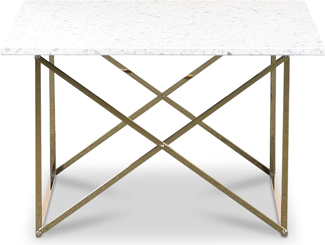 Terrazzo sohvapöytä 75x75cm - Bianco Terrazzo & ristikkorunko messinkiä