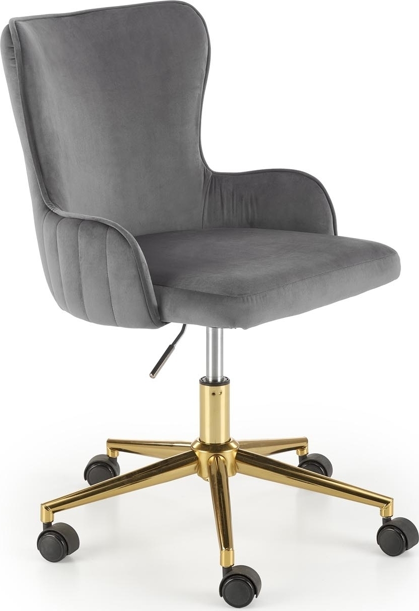 Nojatuoli metallijalalla ja samettikangasverhoilu.