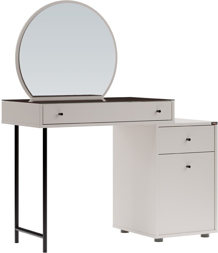 Valmistettu melamiinilla päällystetystä lastulevystä ja tuettu metallijaloilla, tämä peilipöytä ei ole vain kestävä, vaan myös tyylikäs. Karkaistu lasipeili lisää ripauksen hienostuneisuutta.