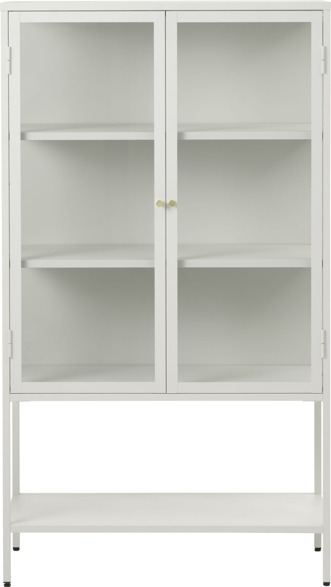 Kutsuva ja tyylikäs lasikaappi, jossa toiminnallisuus yhdistyy moderniin valkoisen ja kullanväriseen muotoiluun. Kaappi ei ainoastaan täytä säilytystarpeitasi, vaan lisää myös visuaalista eleganssia huoneeseen. Kaapin suorakulmaista muotoa tukee tukeva metallirunko, joka varmistaa kestävyyden, kun taas kaksi kestävästä lasista valmistettua ovea avautuvat kolme tilavaa hyllyä. Jokainen hylly kestää 20 kg:n painon ja on suunniteltu pitämään kaiken kirjoista koristeisiin tai keittiötarvikkeisiin.
