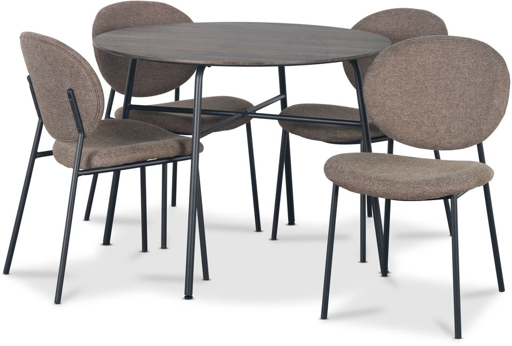 Tofta ruokaryhmäpöytä Ø100 cm tummaa puuta + 4 Tofta ruskeaa tuolia