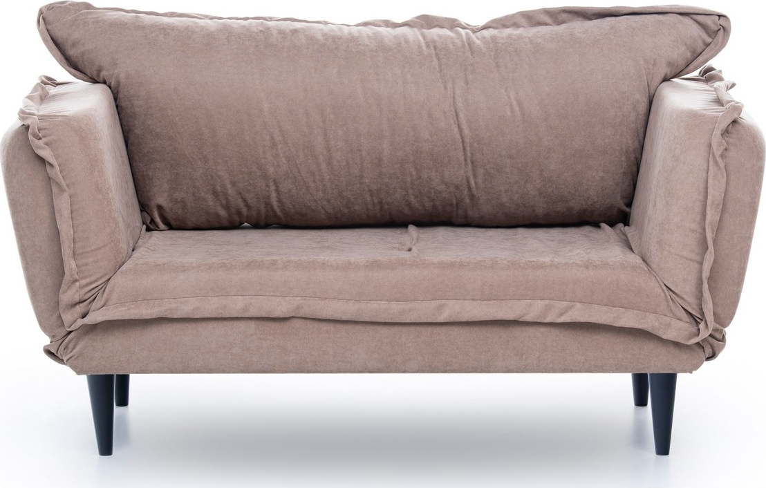 Päiväsänky ruskeaa pellavakangasta ja pehmustettu vaahtomuovilla lisäämään mukavuutta. Pyöreät mustat jalat massiivipuusta. Runko on valmistettu tukevasta metallista. Käsinojat ovat erikseen taitettavat, 5 eri asentoon. Jos molemmat käsinojat käännetään kokonaan alas, sängyn pinta-ala on 200 x 70 cm. Täydellinen makuulle ja lyhyen lepäämiseen.