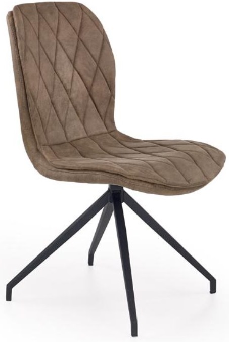 Ylellinen ruokatuoli tyylikkäällä muotoilulla. Jalusta on mustaa metallia ja istuin on päällystetty kestävällä ruskealla keinonahalla.
