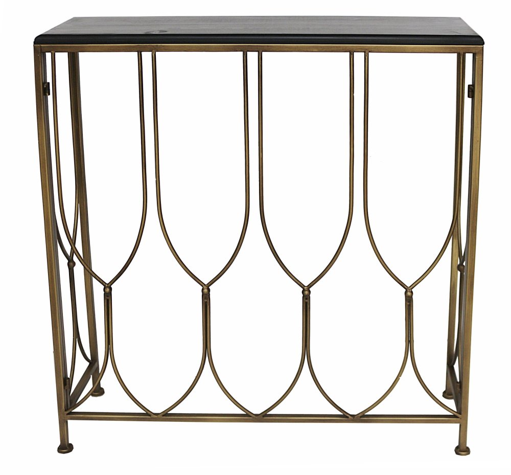 Venestad on vintage-konsolipöytä, jossa on kultainen, kaarevan muotoinen jalusta ja kuusipuinen kansi. Tyylikkäät ja omaleimaiset yksityiskohdat tekevät tästä pöydästä ainutlaatuisen.