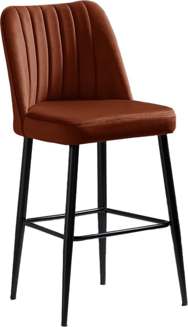 Puinen baarijakkara, metallijalat ja polyesteriverhoilu.