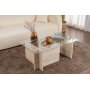Tämän sohvapöydän travertiiniväri lisää lämpöä ja eleganssia jokaiseen olohuoneeseen. Sen yhtenäinen väri ja muotoilu tekevät siitä monipuolisen huonekalun, joka täydentää erilaisia sisustustyylejä modernista perinteiseen.