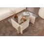 Sohvapöydässä on karkaistusta lasista valmistettu pöytälevy, joka ei vain anna ylellistä tunnelmaa, vaan myös varmistaa kestävyyden ja turvallisuuden. Sileän pinnan avulla voit esitellä suosikki sisustuselementtejäsi tai vain nauttia kupin kahvia ystävien ja perheen kanssa.